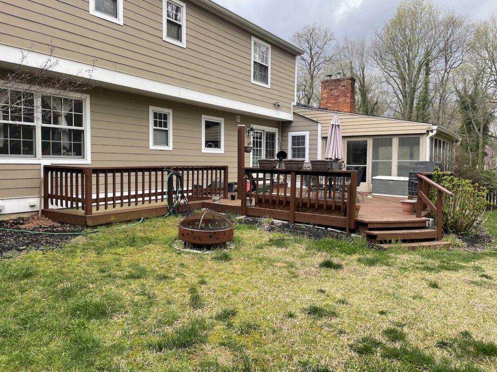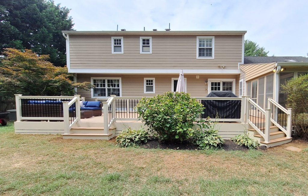 This week’s Makeover Monday is a TimberTech deck makeover out of Arnold, Maryland. TimberTech composite decking is an excellent replacement option for older wood decks due to its exceptional durability and low maintenance requirements. Made from sustainable materials, it offers superior resistance to rot, insects, and moisture, reducing the need for frequent repairs or treatments. Its consistent aesthetic appeal mimics natural wood while being more resistant to weather-related issues like warping and fading. Additionally, it provides a slip-resistant surface for enhanced safety and is easier to install compared to traditional wood decking, ultimately offering a cost-effective, eco-friendly solution for homeowners.