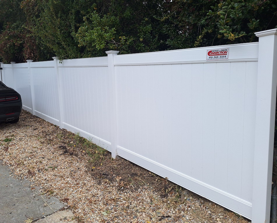 Homeowners in Arnold, Maryland reached out to Fence & Deck Connection looking to upgrade their yard’s chain link and wood fencing. Project Consultant Kevin Bullion helped design a more beautiful boundary using Fence & Deck Connection’s TruConnect vinyl privacy fencing.