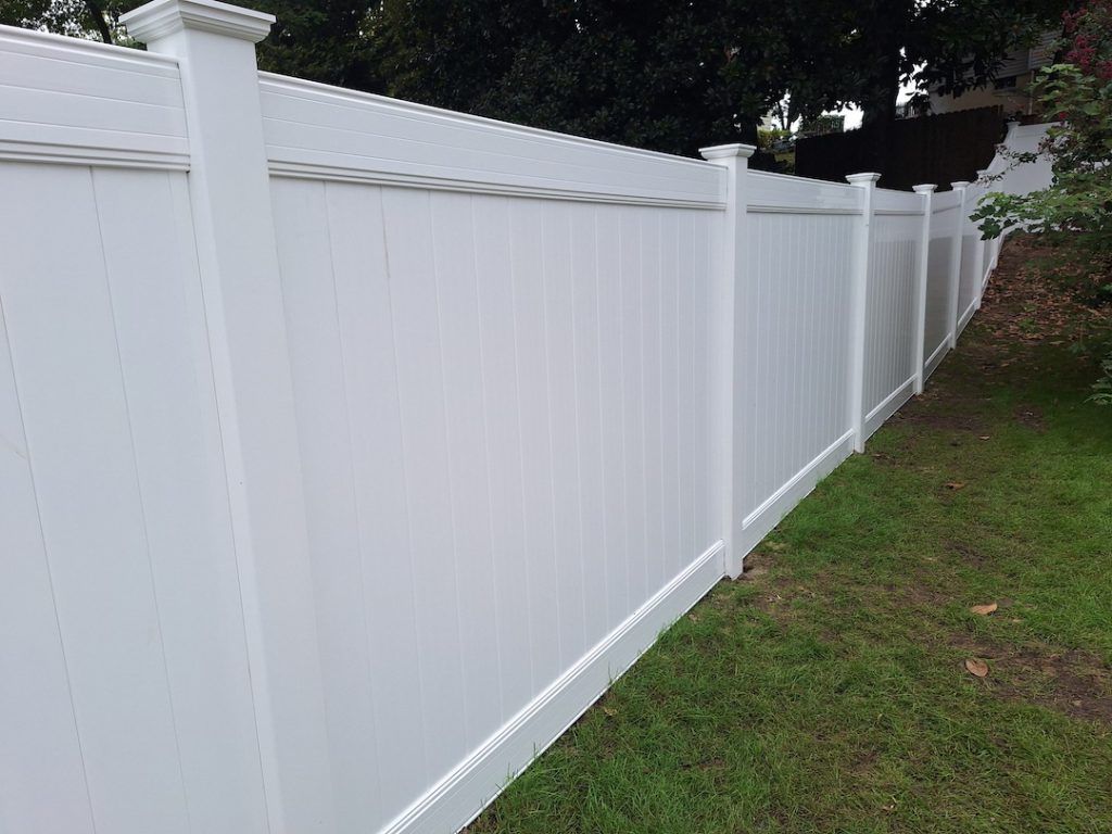We first removed approximately 295′ of our customer’s old fencing, before installingl 237′ of 6′ tall TruConnect white vinyl fencing with New England post caps. Last year we introduced TruConnect, exclusively from Fence & Deck Connection. Our TruConnect technology for privacy fencing includes an interlocking picket system engineered to withstand higher wind loads. Not only will it give you full privacy, but it also gives additional strength to the fence, protecting your investment.