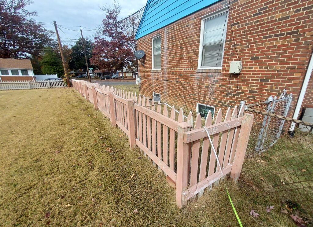 We first removed some of the home’s existing fencing before installing 350 feet of 6′ high vinyl privacy fencing in the Cypress color, with New England-style post caps. The beautiful Cypress wood grain pattern is the perfect way to keep your property private while adding a touch of style and sophistication. We also installed one matching 5′ wide walk gate that provides access from the front yard to the back.