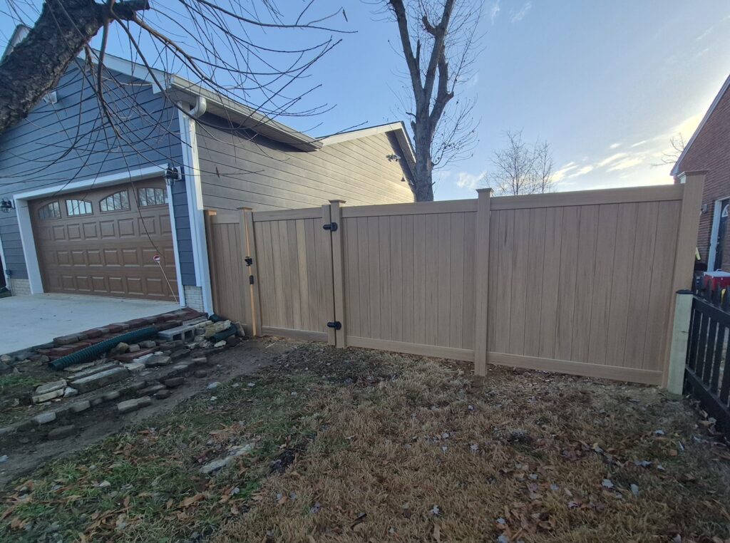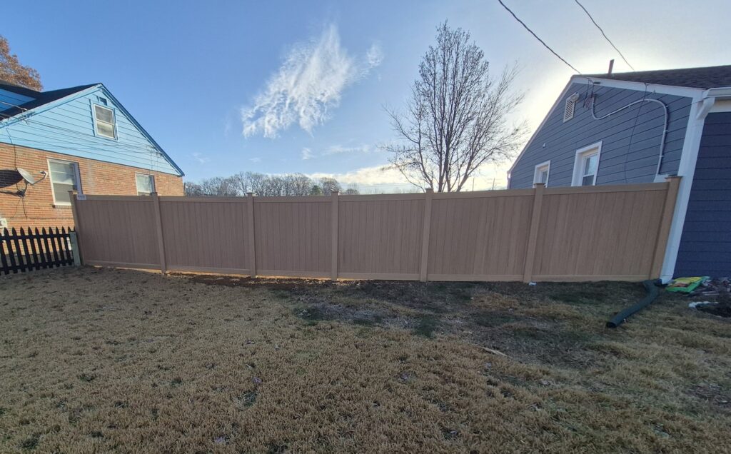 Project Consultant David King worked with homeowners in Oxon Hill, MD to redesign their backyard using high quality cypress-colored vinyl privacy fencing. It completely transforms the overall aesthetic of this PG County home and yard!