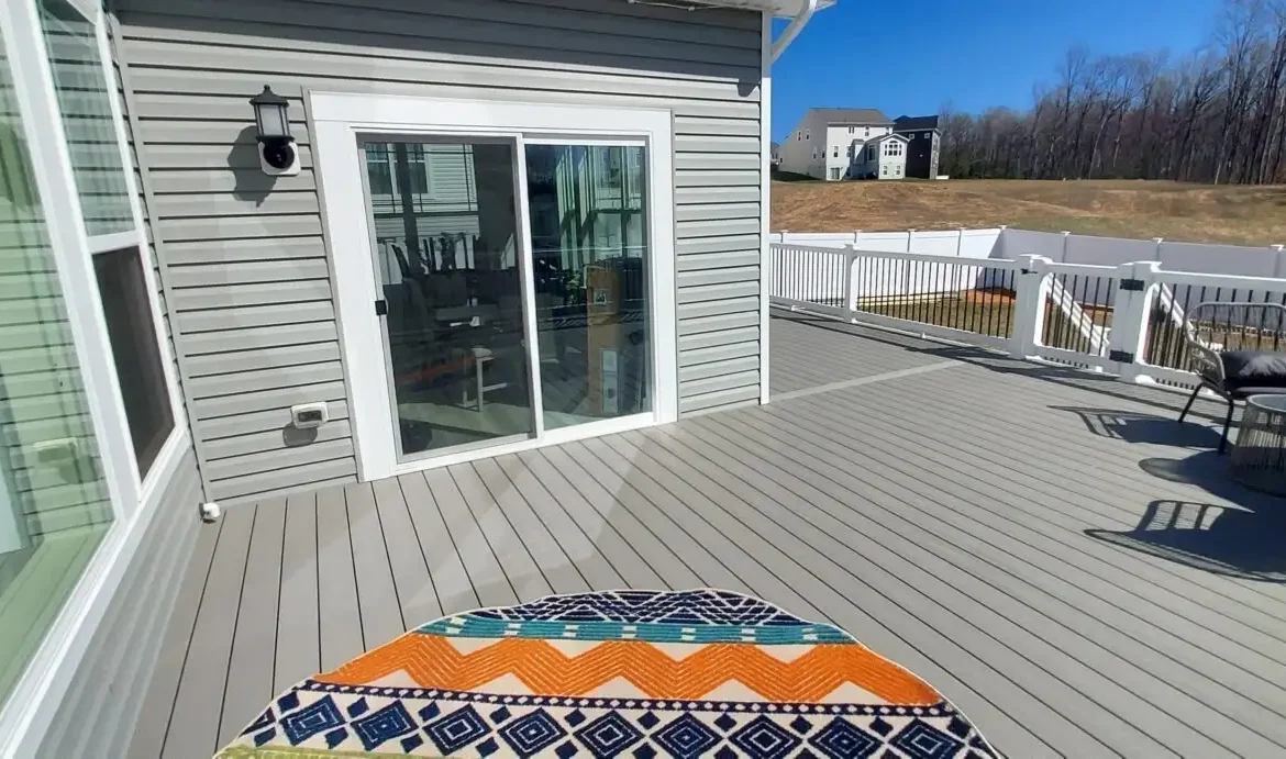 Homeowners in White Plains, Maryland reached out to Fence & Deck Connection to build the missing piece to their outdoor area: a spacious, maintenance-free deck! Project Consultant Christopher Homes helped our customers in Charles County design a beautiful composite deck using Trex Enhance Tide Pool decking that offers plenty of room for relaxing and entertaining!