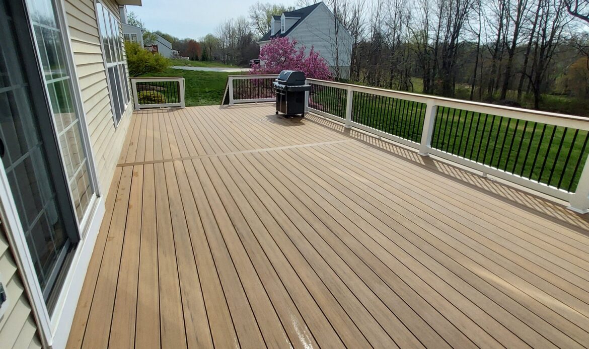 Project Consultant David King helped our clients in Anne Arundel County redeck their large outdoor space using existing footers and beams, while replacing the boards with maintenance-friendly composite decking. The updated deck designed using TimberTech decking is a beautiful upgrade and transformation!