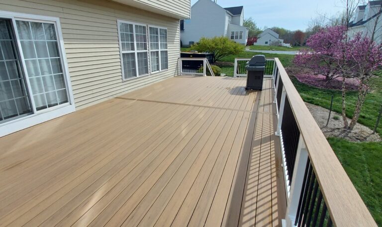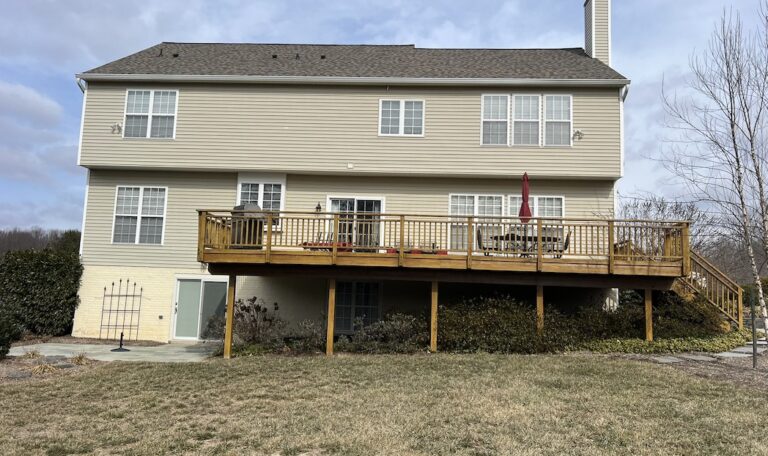 Redecking is an efficient way to restore a deck and enjoy the benefits of a new deck, all without the full cost of a complete teardown and rebuild. Once an inspection has been made by a professional deck installation company, homeowners can identify if any of a current deck is salvageable for a budget friendly outdoor makeover. Generally, redecking involves removing your railings, decking, and stairs but keeping the existing structure/frame. Customers in Lothian, Maryland wanted to use their existing framework, as long as it was safe and structurally sound, but make the switch from wood decking to composite.