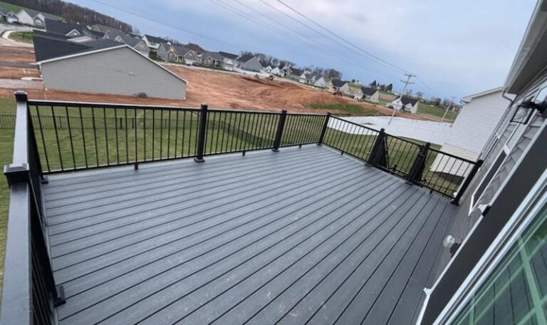 At Fence & Deck Connection, we love helping homeowners in the Mid-Atlantic transform their outdoor living spaces, especially homes with a “clean slate,” and this recent project is no exception! Our client in one of Pennsylvania’s new builder communities was ready to add a much needed outdoor addition to complete the home with a a sleek, stylish, and low-maintenance deck. Project Consultant Tom Reese worked with customers to design a deck that matched the look of the home and their own personal style. The end result is a stunning deck with plenty of of personality!