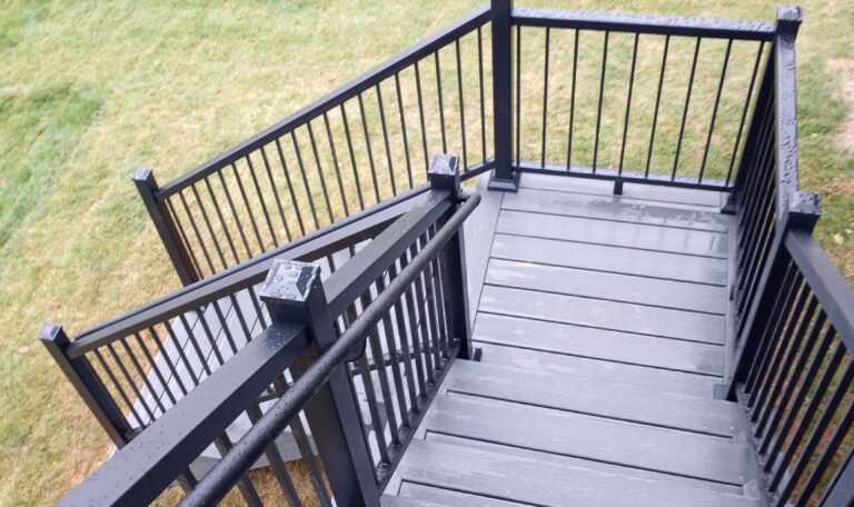 Facing the rear of the home, this new deck begins 1 foot from the right rear corner, expanding into a spacious 12′ x 20′ platform — ideal for entertaining, grilling, or just soaking up some sunshine. To provide convenient access from the yard, we installed a centered 4′ x 5′ landing with clean, structured steps leading down. To support this structure, we used upset beams for a raised, polished look and long-lasting durability. With 260 square feet of outdoor space, this deck adds tremendous value and usability to the home.