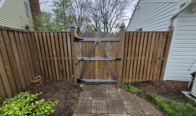 To maintain easy access to the backyard, we installed two gates: one 4′ wide and another 5′ wide. Both gates were equipped with sturdy and secure Keystone latches, which are known for their sleek design and reliable functionality.