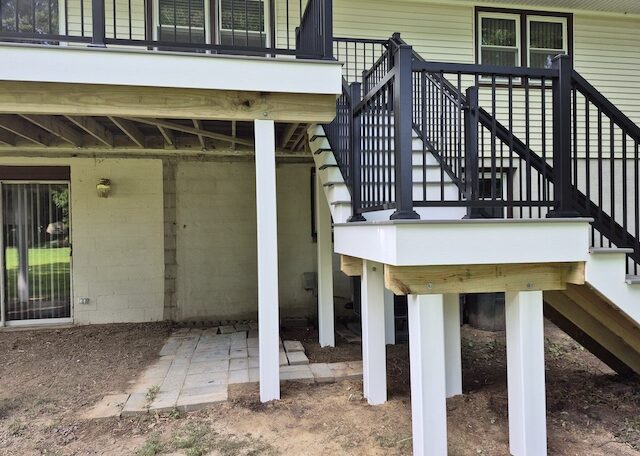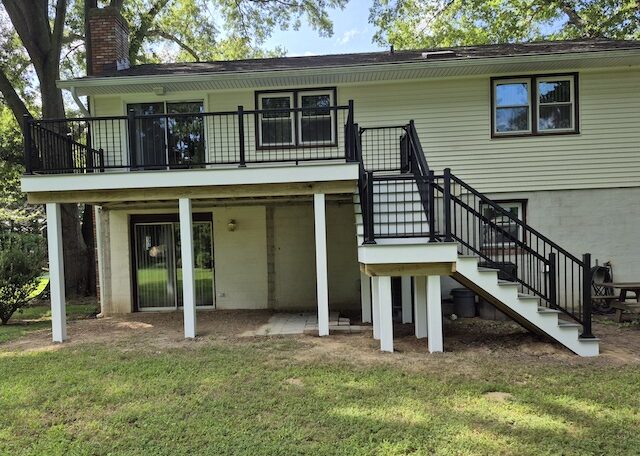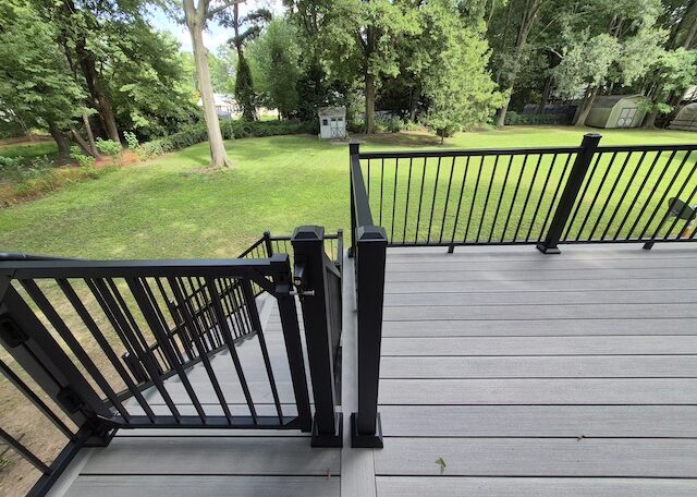 The project started by removing the old stairs and properly hauling away all debris. We made room for a brand-new composite deck and safe, stylish landings.