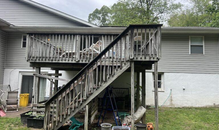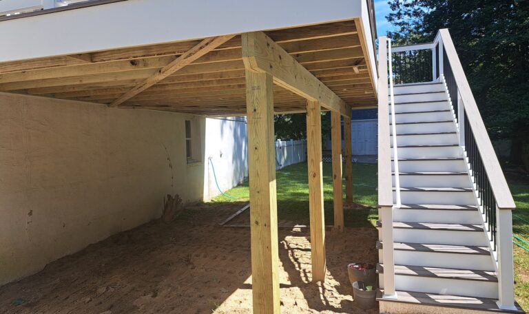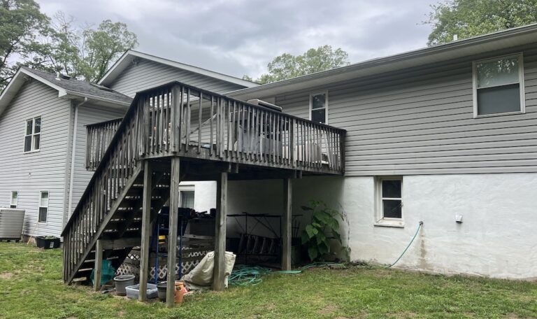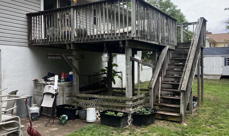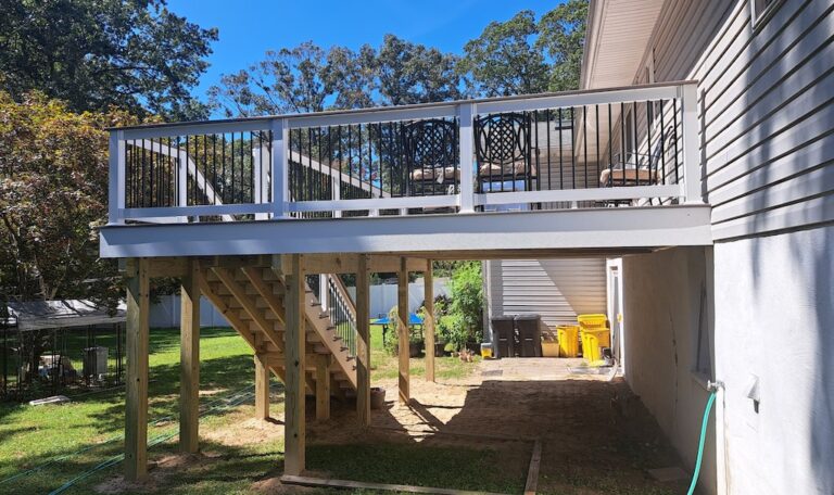 This week for Makeover Monday, we’re taking a trip to Pasadena, Maryland, where we had the pleasure of transforming a backyard into a stunning, low-maintenance outdoor living space using customer-favorite Trex decking. Our clients wanted to replace their old dilapidating wooden deck with something that would not only look beautiful, but also last for years to come with minimal upkeep. To bring their vision to life, Project Consultant Brian Hannon (with the help from the rest of our amazing team) designed a spacious 22′ x 14′ deck that would serve as the perfect spot for family gatherings and relaxation.