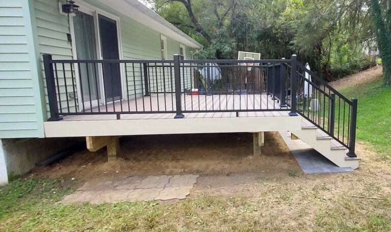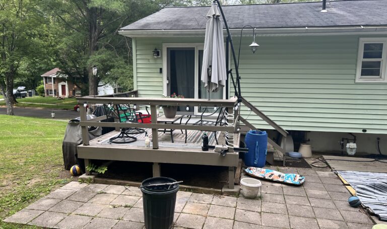 When it comes to creating the ultimate backyard retreat, a well-designed deck is a must. This summer, Fence & Deck Connection was pleased to help homeowners in Upper Marlboro, Maryland transform their outdoor space — one that is more spacious, modern, and requires far less maintenance. Project Consultant Chris Holmes helped our customers design a new space that offers plenty of room for relaxing and entertaining. We first removed and hauled away the existing wood deck before our hardworking crew installed the framework for a new 13′ x 13′ Trex deck.