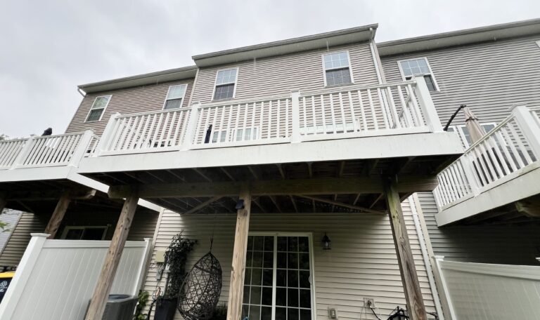 The finished result is a beautiful updated townhome deck without the cost of a full rebuild. The combination of TimberTech decking, a low-maintenance vinyl pergola, and durable aluminum elements ensures this deck will be enjoyed for many years to come. If you live in a townhome community and are considering updating or expanding your outdoor space, a re-deck like this one offers an incredible return both in beauty and functionality!