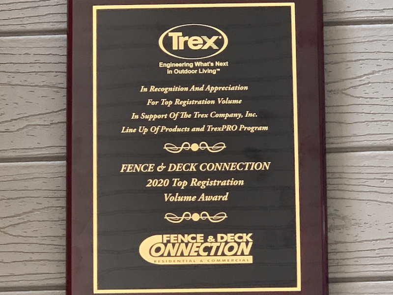 Fence & Deck Connection Receives Trex’s Top Registration Volume Award for 2020