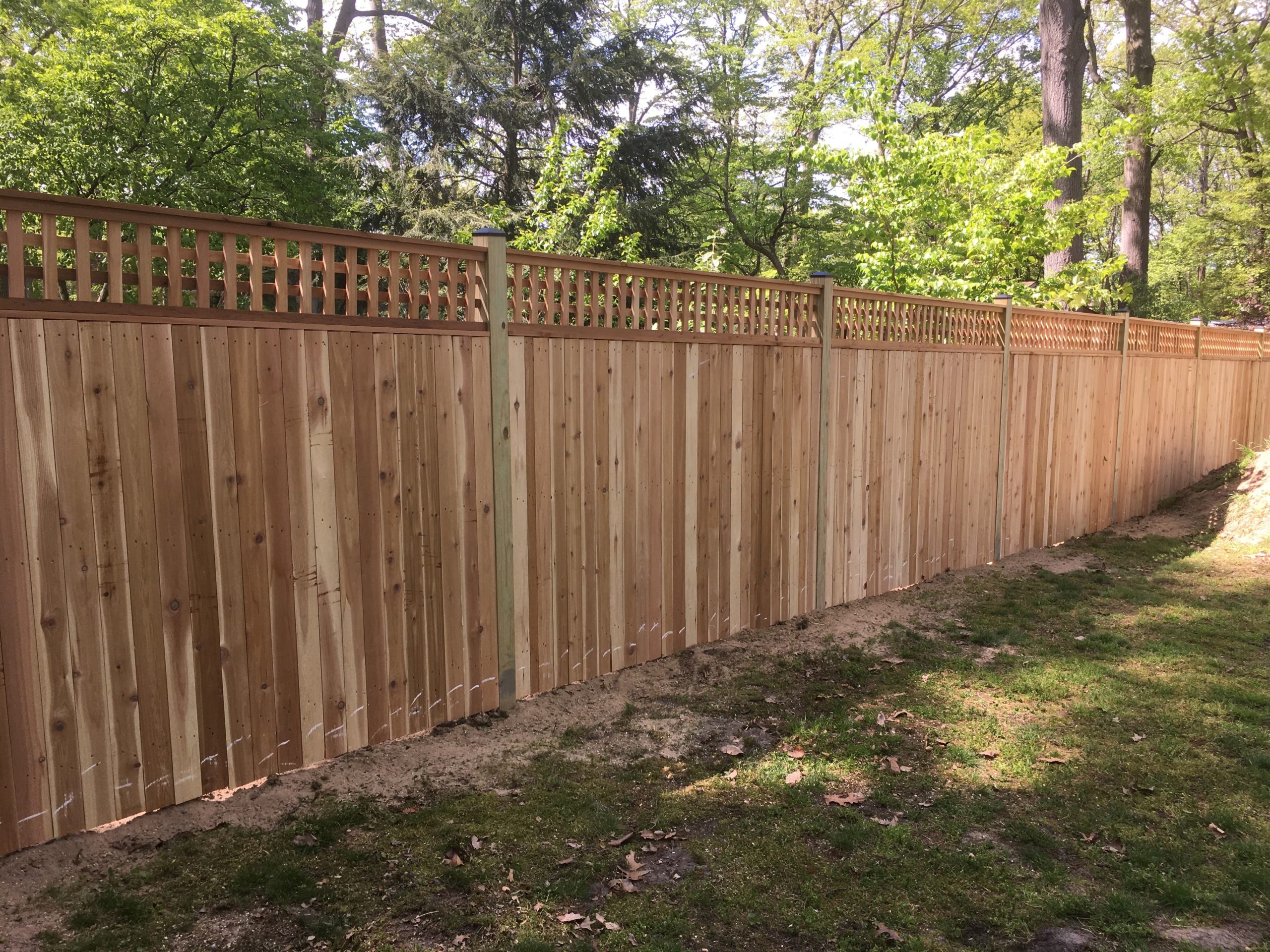 Gallery Fences Decks Screened Porches 6_ height Cedar fence board and batten (2)6_ height Cedar fence board and batten6_ high cedar board and batten privacy fencing with 6x6 post and cedar New England post caps Fence to have 1x6 cedar fascia board on top only 26_ high cedar board and batten privacy fencing with 6x6 post and cedar New England post caps Fence to have 1x6 cedar fascia board on top only8 feet high cedar board board & batten fencing - 20200508_1345348 feet high cedar board board & batten fencing - 20200508_134537050323 Dan Santin (QC Photo #2)061022 Catie James (QC Photo #2)20220216_111923 - Copy20220504_142701arch top (convex) all cedar board & batten fence 8_ tall 061021 Catie James (QC Photo #1)Board on batten style with 1x6 top and bottom fascia and new england post caps 2Board on batten style with 1x6 top and bottom fascia and new england post capscedar 48_ board on board privacy fencing with dog eared pickets and cedar New England post caps 5_ WG to be spaced dog eared pickets with standard hardcedar board board & batten - 8 feet high cedar board board & batten fencing - 20200508_134654cedar board board & batten - 8 feet high cedar board board & batten fencing - 20200508_134725cedar board board & batten - 8_h Cedar Picket Board & Batten wCap Board 20200414_101711cedar board board & batten - 8_h Cedar Picket Board & Batten wCap Board 20200414_101719Cedar Spaced Picket Concave Dip Wood Fence with French Gothic Postscedar vertical board fence - 20200918_101002cedar vertical board fence - 20200918_101050cedar vertical board fence - 20200918_101111Cedar Vertical Board Fence w 6x6 Pressure-Treated Posts, Cedar Closed Spindles, Bottom 1x6 Cedar Fascia Boards, and Cedar New England Post Caps 2Cedar Vertical Board Fence w 6x6 Pressure-Treated Posts, Cedar Closed Spindles, Bottom 1x6 Cedar Fascia Boards, and Cedar New England Post Caps 20230621_110106Cedar Vertical Board Fence w 6x6 Pressure-Treated Posts, Cedar Closed Spindles, Bottom 1x6 Cedar Fascia Boards, and Cedar New England Post Caps 20230621_110117Cedar Vertical Board Fence w 6x6 Pressure-Treated Posts, Cedar Closed Spindles, Bottom 1x6 Cedar Fascia Boards, and Cedar New England Post Caps 20230621_110130Cedar Vertical Board Fence w 6x6 Pressure-Treated Posts, Cedar Closed Spindles, Bottom 1x6 Cedar Fascia Boards, Cedar New England Post Caps, gate and trellis3_h Cedar Horizontal Fence wDog Eared Post Mixed 1x6, 1x4, & 1x2 PicketsRunners wSpacing, Post will Pressure Treated, Top Board Cover Height of Post4 foot High, Cedar Vertical Board Fence w Cedar Cap Boards and Bottom 1x6 Cedar Fascia Boards in front of6 foot high cedar horizontal fencing with spaced 1x4 horizontal cedar boardsWilderman Fence 2IMG_20210217_135331226_HDRIMG_20230406_132947horizontal cedar fencing 6_ (6 boards) no spacing - 021122 Brianne Jones (QC Photo #6)horizontal cedar fencing 6_ (6 boards) no spacing - 021122 Brianne Jones (QC Photo #5)horizontal cedar fencing 6_ (6 boards) no spacing - 021122 Brianne Jones (QC Photo #8)horizontal cedar fencing 6_ (6 boards) no spacing - 021122 Brianne Jones (QC Photo #7)Level and Stepped 5 foot, 6 foot, 7 foot, then 6 foot Cedar Vertical Board Fence w 6x6 Pressure-Treated Posts, Cedar Closed SpindlesMay-14-2020-15-59-12-EDT - 0400 (1)Cedar Vertical Board Fence w 6x6 Pressure-Treated Posts, Cedar Lattice and standard Black Post CapsQC 1 (13) - boards board on board fencing + 1 foot of cedar square lattice (6+1=7 ft high total)fdccc(1) Gallery Fences Decks Screened Porches 6_ height Cedar fence board and batten (2)6_ height Cedar fence board and batten6_ high cedar board and batten privacy fencing with 6x6 post and cedar New England post caps Fence to have 1x6 cedar fascia board on top only 26_ high cedar board and batten privacy fencing with 6x6 post and cedar New England post caps Fence to have 1x6 cedar fascia board on top only8 feet high cedar board board & batten fencing - 20200508_1345348 feet high cedar board board & batten fencing - 20200508_134537050323 Dan Santin (QC Photo #2)061022 Catie James (QC Photo #2)20220216_111923 - Copy20220504_142701arch top (convex) all cedar board & batten fence 8_ tall 061021 Catie James (QC Photo #1)Board on batten style with 1x6 top and bottom fascia and new england post caps 2Board on batten style with 1x6 top and bottom fascia and new england post capscedar 48_ board on board privacy fencing with dog eared pickets and cedar New England post caps 5_ WG to be spaced dog eared pickets with standard hardcedar board board & batten - 8 feet high cedar board board & batten fencing - 20200508_134654cedar board board & batten - 8 feet high cedar board board & batten fencing - 20200508_134725cedar board board & batten - 8_h Cedar Picket Board & Batten wCap Board 20200414_101711cedar board board & batten - 8_h Cedar Picket Board & Batten wCap Board 20200414_101719Cedar Spaced Picket Concave Dip Wood Fence with French Gothic Postscedar vertical board fence - 20200918_101002cedar vertical board fence - 20200918_101050cedar vertical board fence - 20200918_101111Cedar Vertical Board Fence w 6x6 Pressure-Treated Posts, Cedar Closed Spindles, Bottom 1x6 Cedar Fascia Boards, and Cedar New England Post Caps 2Cedar Vertical Board Fence w 6x6 Pressure-Treated Posts, Cedar Closed Spindles, Bottom 1x6 Cedar Fascia Boards, and Cedar New England Post Caps 20230621_110106Cedar Vertical Board Fence w 6x6 Pressure-Treated Posts, Cedar Closed Spindles, Bottom 1x6 Cedar Fascia Boards, and Cedar New England Post Caps 20230621_110117Cedar Vertical Board Fence w 6x6 Pressure-Treated Posts, Cedar Closed Spindles, Bottom 1x6 Cedar Fascia Boards, and Cedar New England Post Caps 20230621_110130Cedar Vertical Board Fence w 6x6 Pressure-Treated Posts, Cedar Closed Spindles, Bottom 1x6 Cedar Fascia Boards, Cedar New England Post Caps, gate and trellis3_h Cedar Horizontal Fence wDog Eared Post Mixed 1x6, 1x4, & 1x2 PicketsRunners wSpacing, Post will Pressure Treated, Top Board Cover Height of Post4 foot High, C