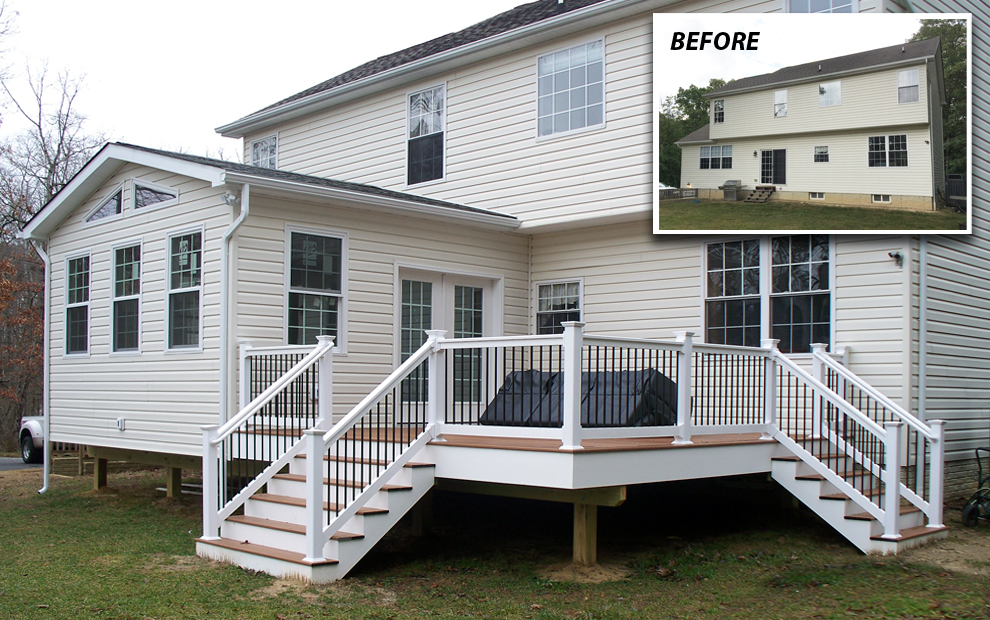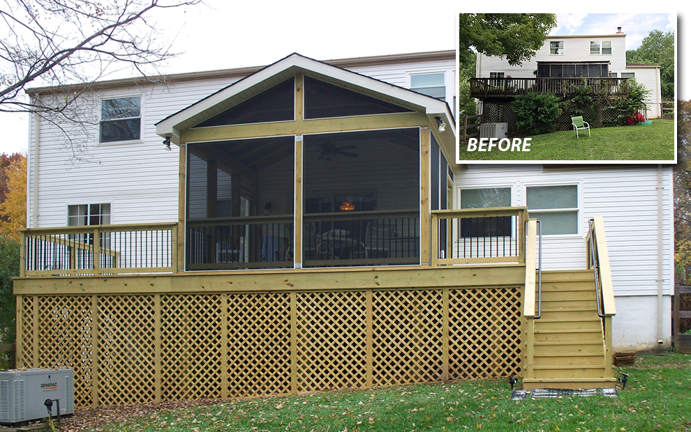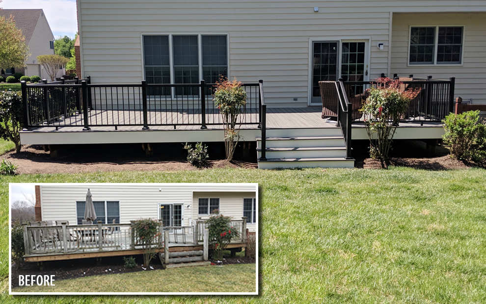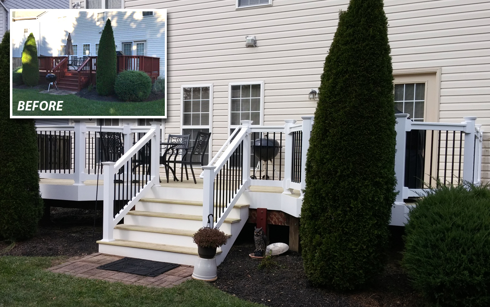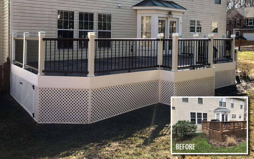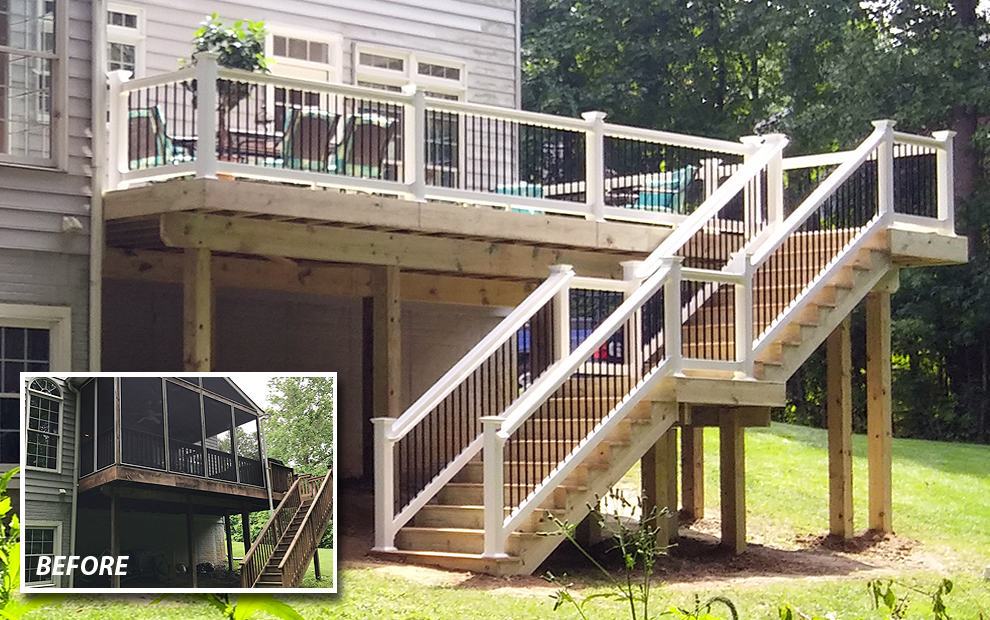 Gallery Fences Decks Screened Porches 1-Alvear Fnished Room # 22095RA after 12 Level Deck with Trex Select Saddle Decking with White Washington Railing and Black Aluminum Balusters + Fascia and Support Posts and Beams are wrapped in White Vinyl in Bowie M2-Brooks Deck # 22111D3-Dredden ReDeck # 23426D4-BA_Moineau Screen Porch # 22361RA5-Green Deck # 21519D6-BA_O_Connell ReDeck # 23459D7-BA_Spiers Deck # 20587D8-Edwards Deck # 22236D9-Front Porch10-Klein Re-Deck # 21146D11-Mealy Daughters Deck # 23377D12-McInnis Deck # 22164D13-Lagarde (Severn School) Deck # 23094D14-BA_Lipscomb Deck # 24121D - 215-Javornik Screen Room # 22458RA16-Krieger Deck # 22073DBefore And After Built In Benches - Changing from Wood to CompositeBefore And After Deck - From Wood to Composite and Vinyl MaterialsBefore And After Screened Porch ProcessBefore And After Stairs - Going from Wood to Composite and VinylTrex Transcend Island Mist Decking with Black Ultralox Aluminum Railing and White VInyl Fascia around perimeter of deck in Arnold MDTrex Transcend Island Mist Decking with White Washington Vinyl Railing + White Vinyl Pergol + White Vinyl Fascia + White Vinyl Privacy Lattice around perimeter of deck in CrownsvTrex Vintage Lantern railing with Black Aluminum Balusters and white Vinyl rail posts + White Vinyl Facsia and Lattice around perimeter of deck FENCE ESTIMATOR Use Our Online Fence Estimator To Get A FREE Budgetary Fence Estimate Today. Try Estimator Tool TRY ESTIMATOR TOOL FREE ESTIMATE Select State Maryland Delaware Georgia Virginia Select Product How did you hear about us? Google Word of Mouth Referral Fence Sign Door Hanger Direct Mailer Vehicle Sign Social Media Other residential See Full Bio Decks – Railing Options Decks – Front Porches
