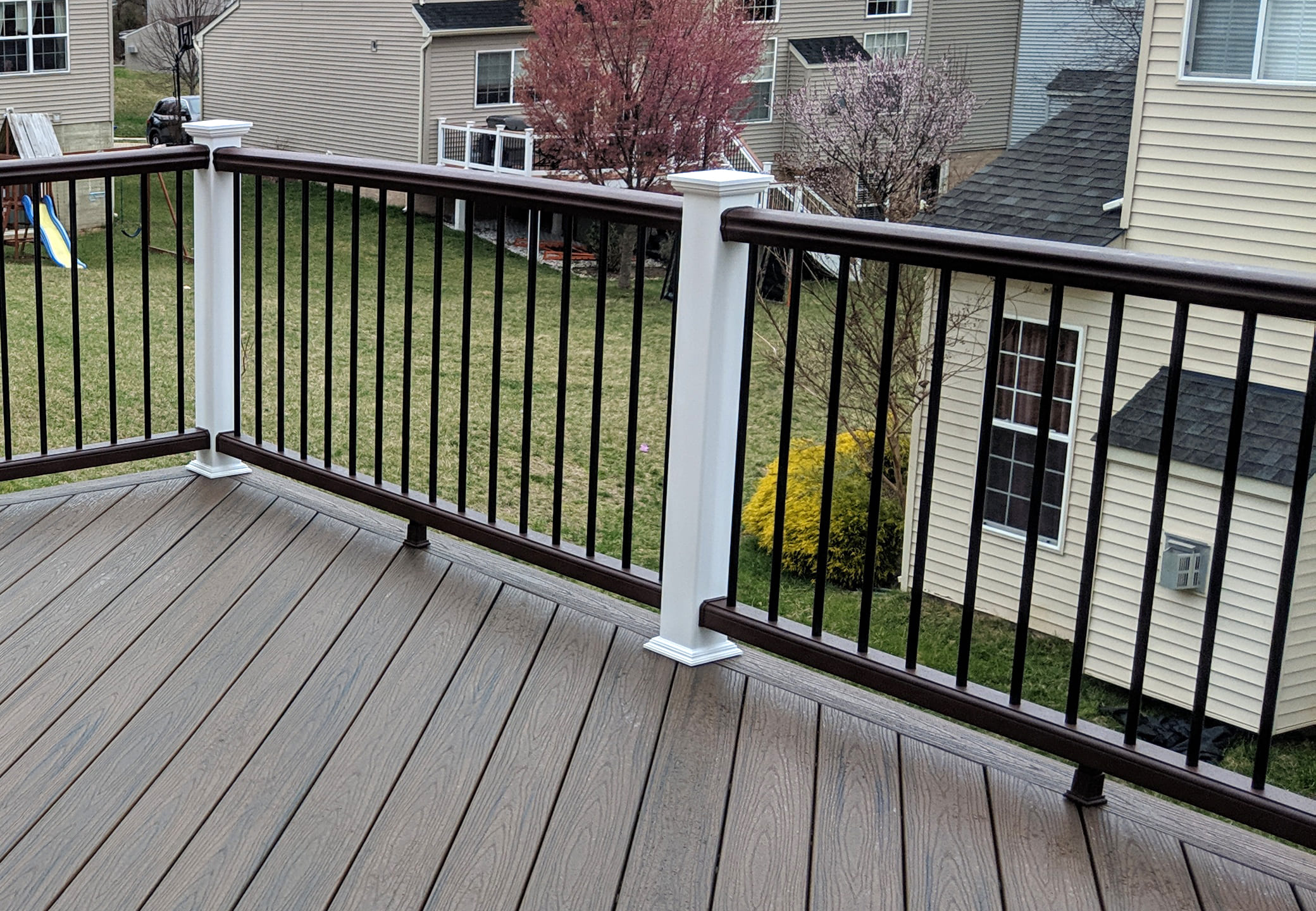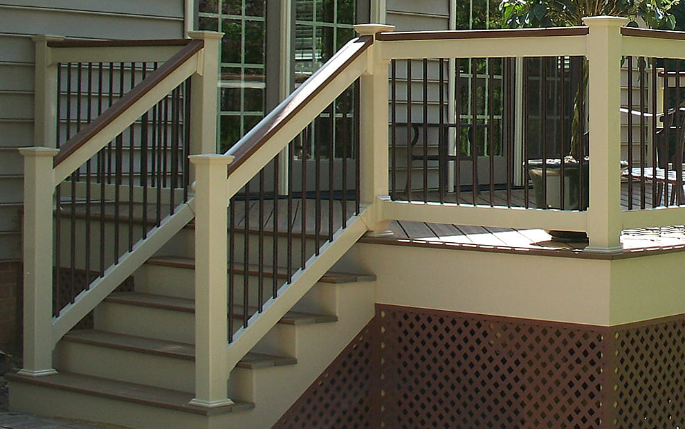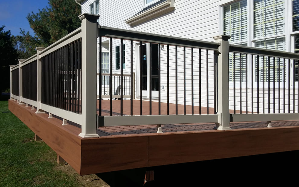 Gallery Fences Decks Screened Porches 18-White Washington Vinyl railing with white vinyl balusters5-Black Aluminum Railing with glass panels3-Black Aluminum Railing with black balusters17-Trex Select Pebble Gray Composite Deck Board with White Composite Railing with Glass Pickets10-Tan Lincoln Vinyl railing with cocktail rail and bronze aluminum balusters2-Aluminum Railing with glass pickets4-transcend-decking-railing-spiced-rum-vintage-lantern-fascia-detail6-Tan Washington Vinyl Railing with Black Aluminum Balusters15-White Washington Vinyl Railing with glass pickets11-White Washington Vinyl Railing with glass pickets2Cocktail Rail on Screened PorchCocktail Rail on a deckTrex Transcend Spiced Rum Decking with White Washington Vinyl with Black Round Aluminum BalustersTrex Select Pebble Gray Decking with White Ultralox Aluminum Railing with Full Glass Panels in Severna Park MDTrex Transcends Gravel Path Composite Railing Black Aluminum Balusters And Timbertech Espresso Cap BoardUltralox Aluminum White Rail and Post with Black BalustersWhite Aluminum Railign with Cable InfillPrivacy Panel on Deck that matches RailingTrex Transcend Island Mist Cocktail RailTrex Transcend Spiced Rum Deck Boards in a Diagonal Pattern with Trex composite railing in matching Spiced Rum with white composite posts and black aluminum balusters in Ellicott City MDTrex Transcend Tiki Torch Deck Boards in Diagonal Pattern with Trex Tree House Composite Railing in Reisterstown MD 2Trex Transcend Spiced Rum Deck Boards with Trex Spiced Rum Composite Railing in Glen Burnie MD14-Black Aluminum Railing with Cable Rail12-Trex Composite Vintage Lantern Posts and railing with Fire Pit square balusters9-Trex Composite Posts in white with cocktail rail and vintage lantern square balusters16-Tan Washington Vinyl Railing with Bronze Aluminum Balusters7-Trex Transcend Tiki Torch Deck Boards with Vintage Lantern post and charcoal black railing and balusters8-White Aluminum with cable rail13-White Composite Railing with Bronze aluminum balusters1-black Aluminum Railing with cable rail 2 FENCE ESTIMATOR Use Our Online Fence Estimator To Get A FREE Budgetary Fence Estimate Today. Try Estimator Tool TRY ESTIMATOR TOOL FREE ESTIMATE Select State Maryland Delaware Georgia Virginia Select Product How did you hear about us? Google Word of Mouth Referral Fence Sign Door Hanger Direct Mailer Vehicle Sign Social Media Other residential See Full Bio Decks – Waterfront photos of Railing Decks – Before & After Gallery