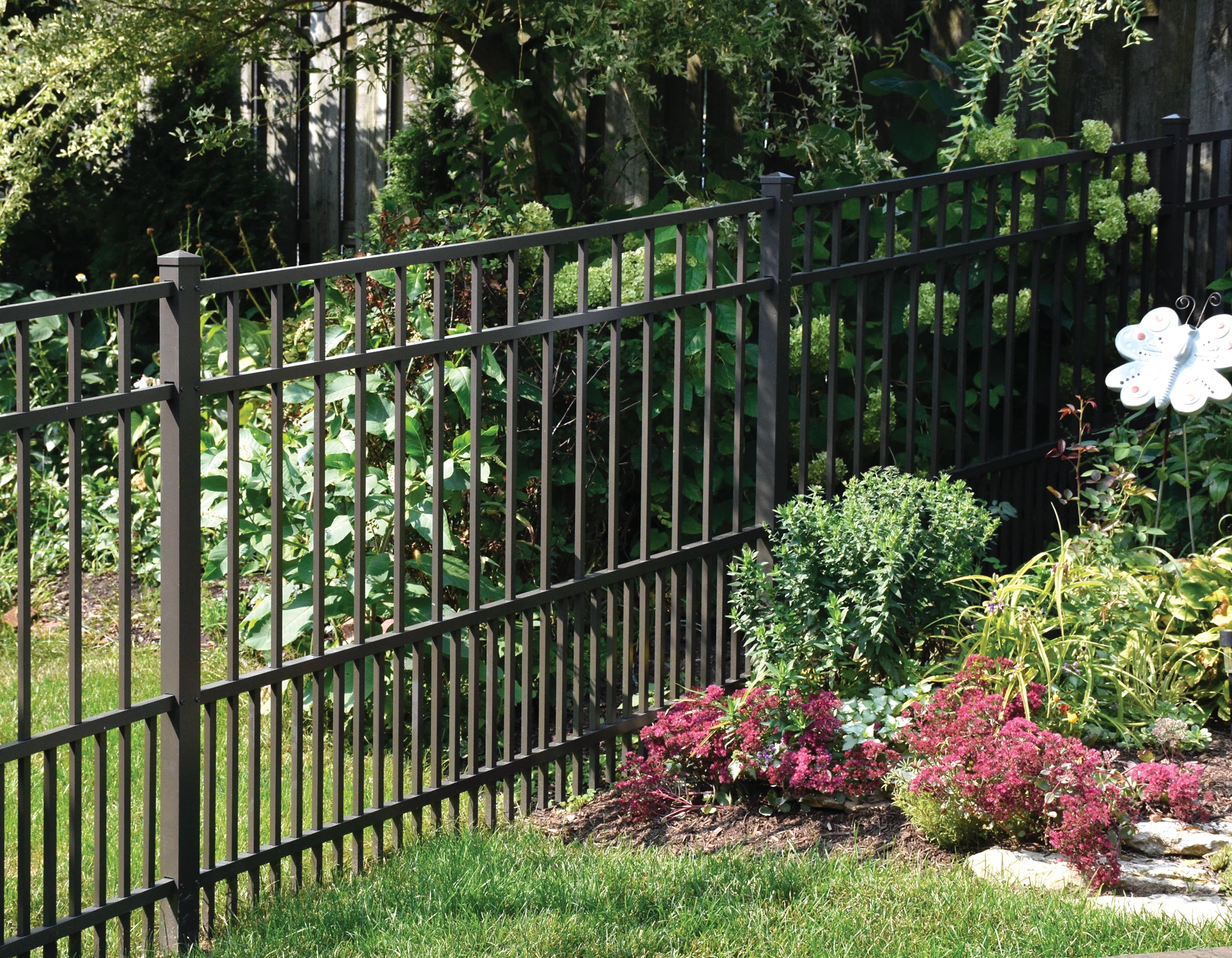 If you love the look of an aluminum fence but have small pets or children, an integrated puppy picket system is an excellent solution that combines security, style, and durability. Our puppy picket aluminum fence options feature closely spaced pickets at the bottom of the fence, preventing small animals from squeezing through and escaping the yard. The upper section of the fence can still have wider spacing for a more open feel, while the lower section ensures secure containment.
