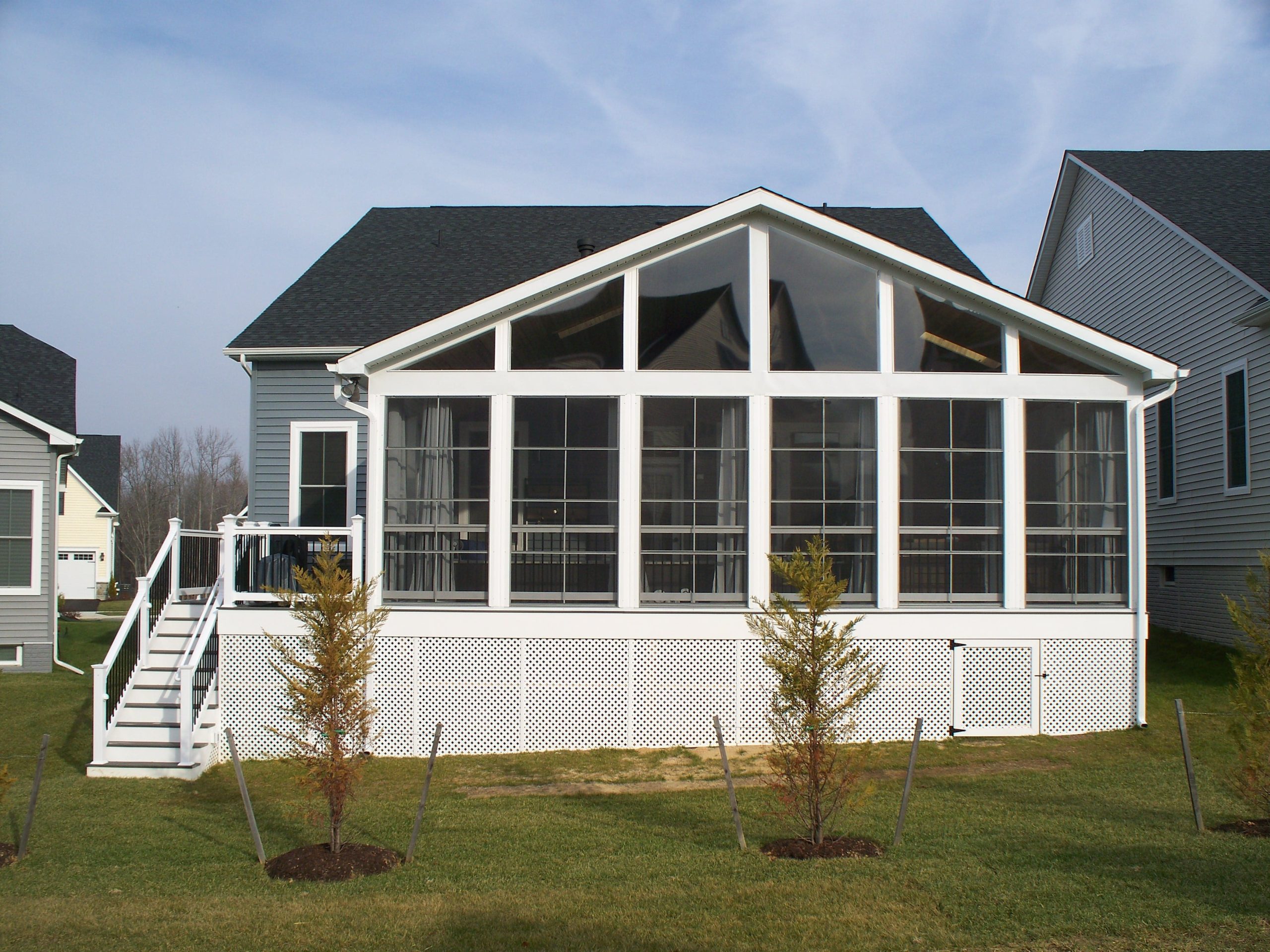 Gallery Fences Decks Screened Porches Here is a photo of the screened porch during the building processFinished screened room from the interior showing the Eze-Breeze sliding panel system allows for use year roundCAD-Drawing-of-a-Screened-Porch-is-created-and-provided-before-we-break-grown-scaled-qwn645llhlljckgak6jbw1uxpeps1z9m9qnit5vgu8Another view of the interior of the screened porchA photo of the finished screened room from the back of the house3D Rendering of the structure from the side angle3D Rendering of the structure from the back of the house3D Rendering of the structure from the other side of the houseScreened Room during the building process of the interior of the room showing structure of roomInside the screened porch during the building process - the ceiling is finished with tongue and groove cedar with sunroofHere is a photo showing the room tie-in to the existing house FENCE ESTIMATOR Use Our Online Fence Estimator To Get A FREE Budgetary Fence Estimate Today. Try Estimator Tool TRY ESTIMATOR TOOL FREE ESTIMATE Select State Maryland Delaware Georgia Virginia Select Product How did you hear about us? Google Word of Mouth Referral Fence Sign Door Hanger Direct Mailer Vehicle Sign Social Media Other residential See Full Bio Screened Porches Options Fences – Wood Fences – Privacy