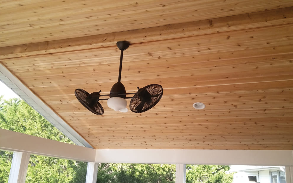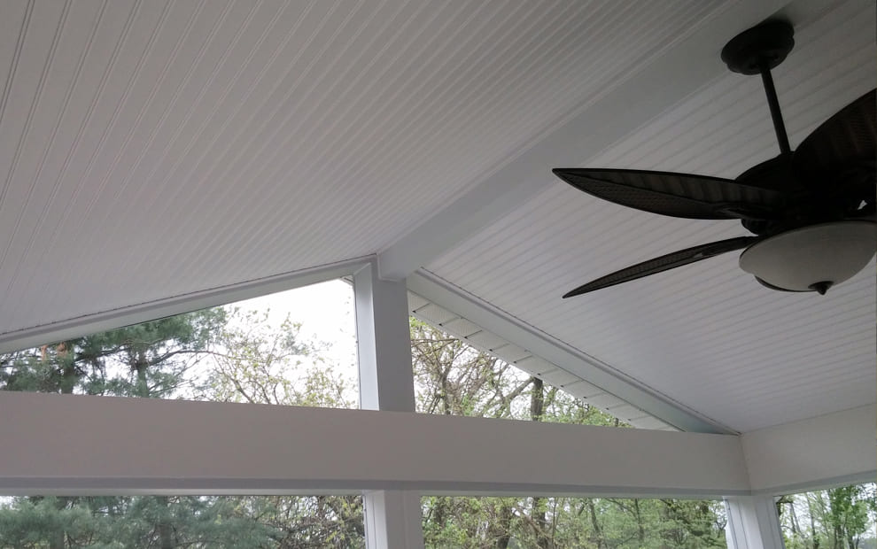 Gallery Fences Decks Screened Porches 6-Beadboard Ceiling finish procide a great finished look and brightens your new space5-shed roof design4-Hip roof Design3-Gable roof Design2-Eze-breeze Sliding Panels1-ScreenEze and SuperScreen9-Knee Walls8-Pine finish for a casual and rustic look leaving the rafters revealed7-Tongue and groove Cedar Ceiling Finish13-Skylights and ceiling fan outlets12-Recessed lights11-Electrical Outlets fan skylights and recessed lights10-Cocktail railAdd visual appeal and create a focal point for outdoor entertaining on your new screened porch with the look of an exposed cedar ceilingPicture framed steps complete the architectural look of your new screened porchThis gabled space on the gabled roof design has been finsihed off with screen allowing more light to enter the room FENCE ESTIMATOR Use Our Online Fence Estimator To Get A FREE Budgetary Fence Estimate Today. Try Estimator Tool TRY ESTIMATOR TOOL FREE ESTIMATE Select State Maryland Delaware Georgia Virginia Select Product How did you hear about us? Google Word of Mouth Referral Fence Sign Door Hanger Direct Mailer Vehicle Sign Social Media Other residential See Full Bio Fences – Wood Fences – Split & Ranch Rail Screened Porch Construction Process
